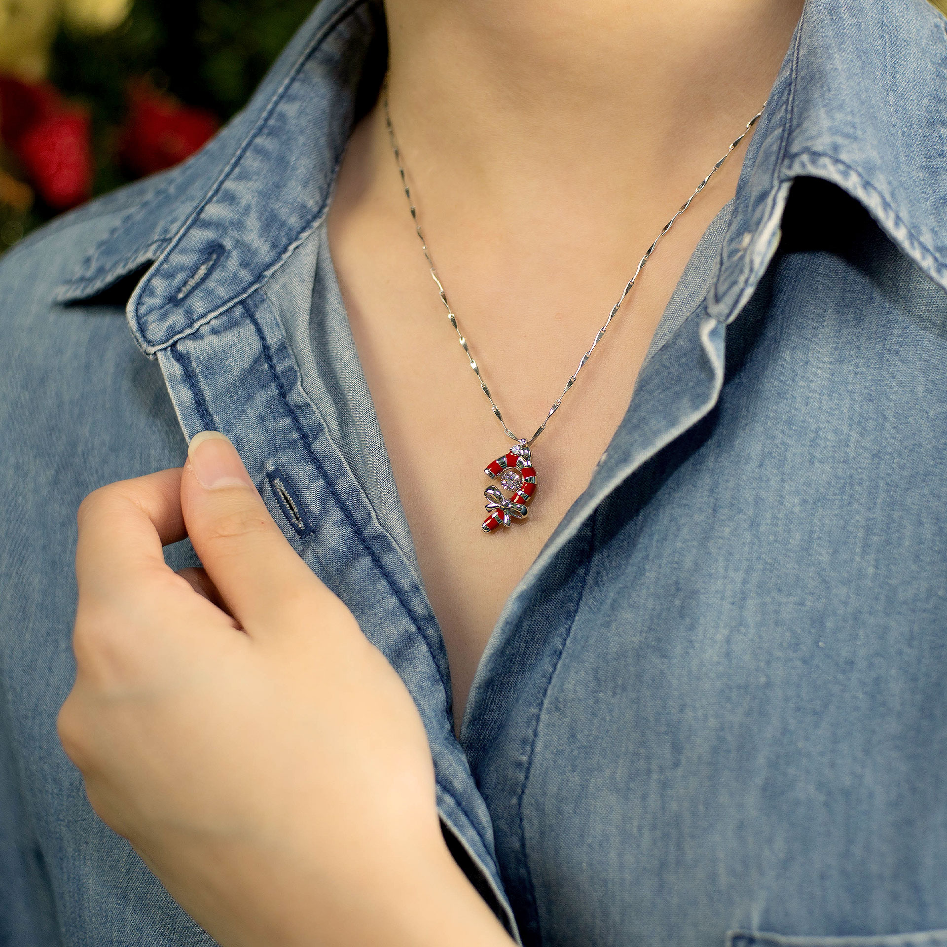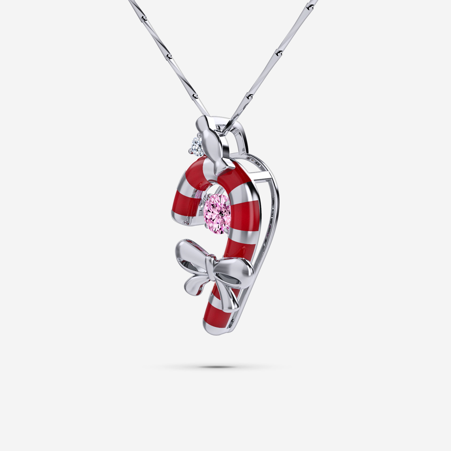 Capture the romance of Christmas with this exquisite Merry Cane pendant that fills with festive cheers. With its glint of pink dancing quartz diamond and brilliant buffed luster makes a perfect Christmas gift for this glittering holiday season.