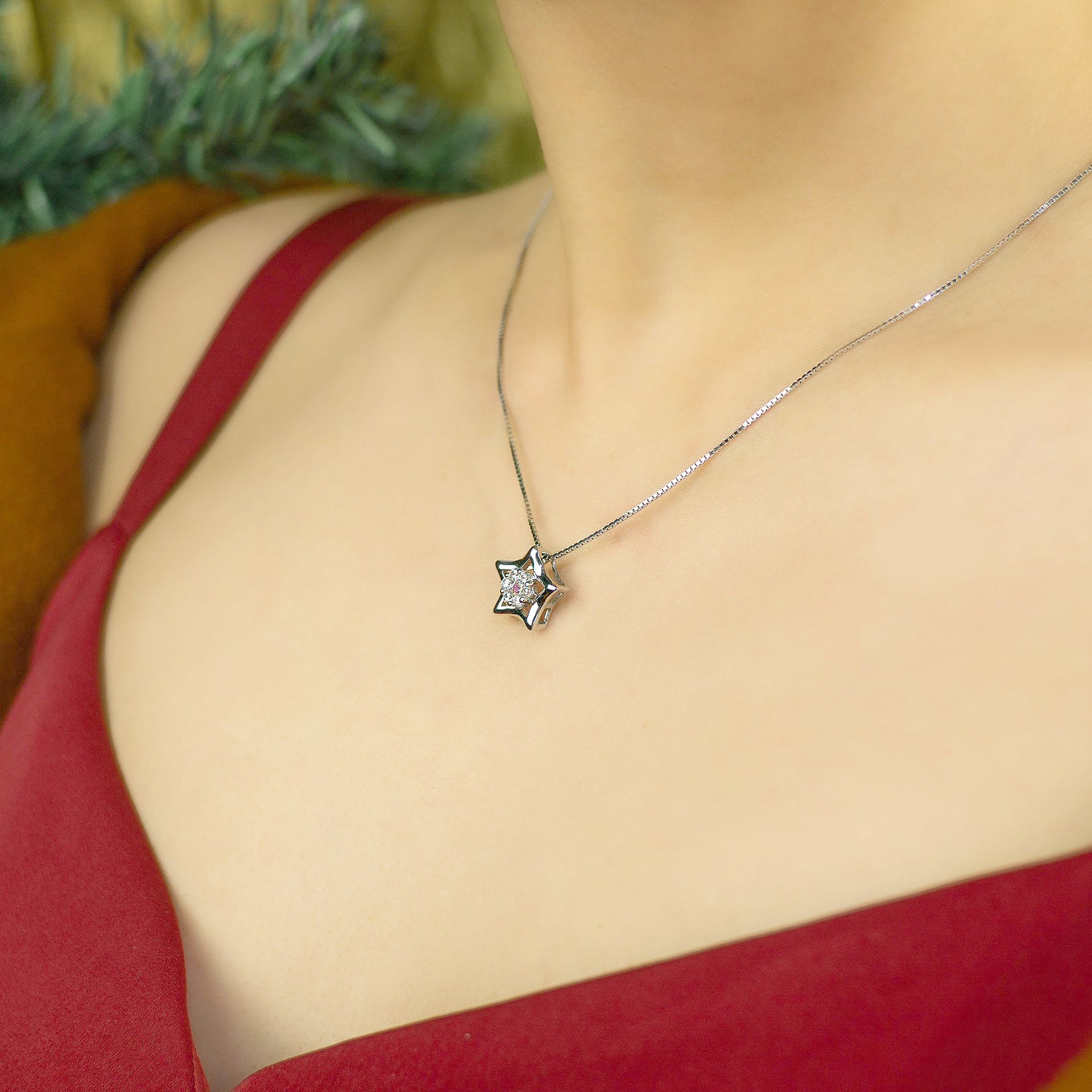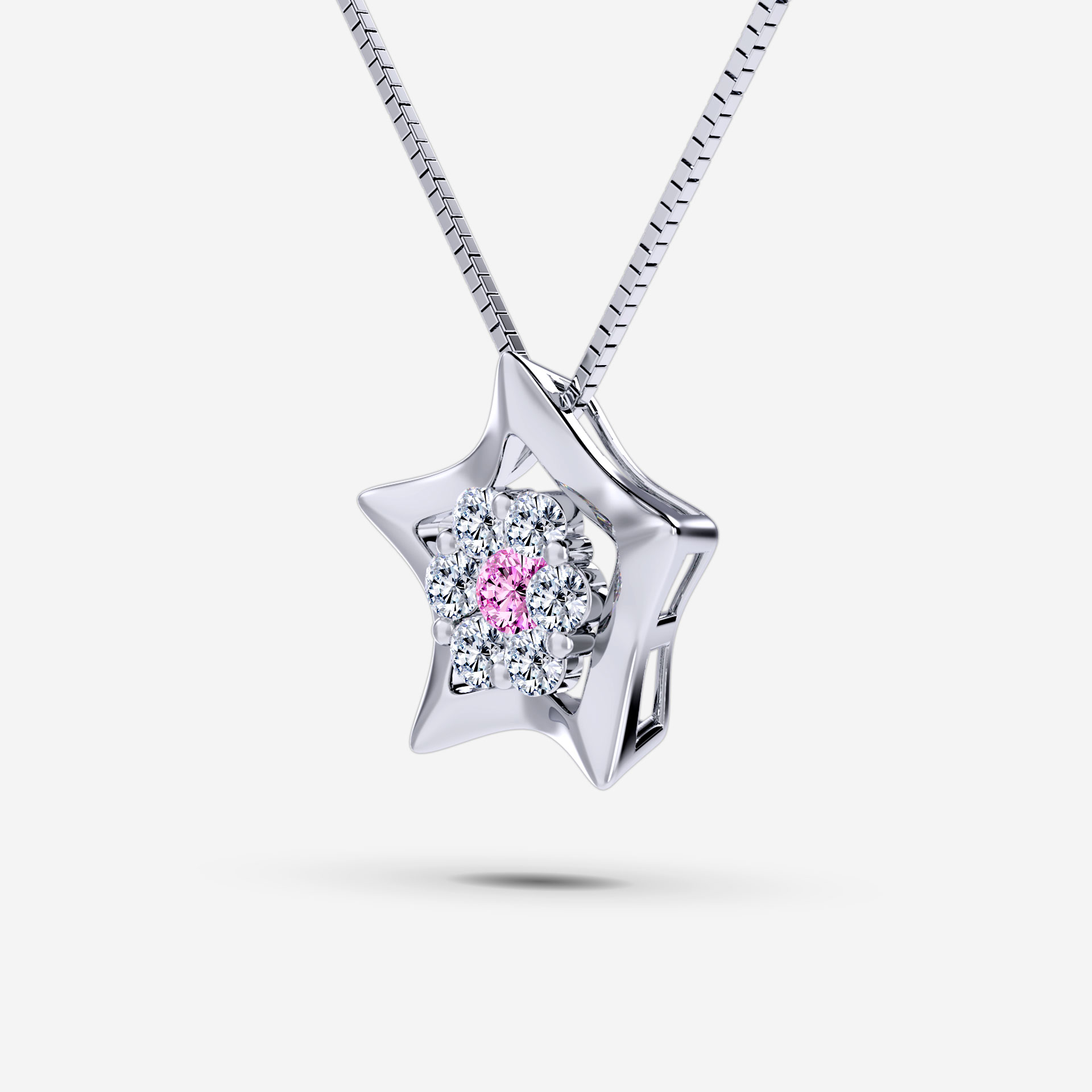 Shine brighter than the stars with this meticulously crafted open frame star pendant that sparkles with the brilliance of the shimmering pink quartz diamonds embellishment in a flower cluster design from the centrepiece, making it a perfect timeless gift to show your everlasting love.