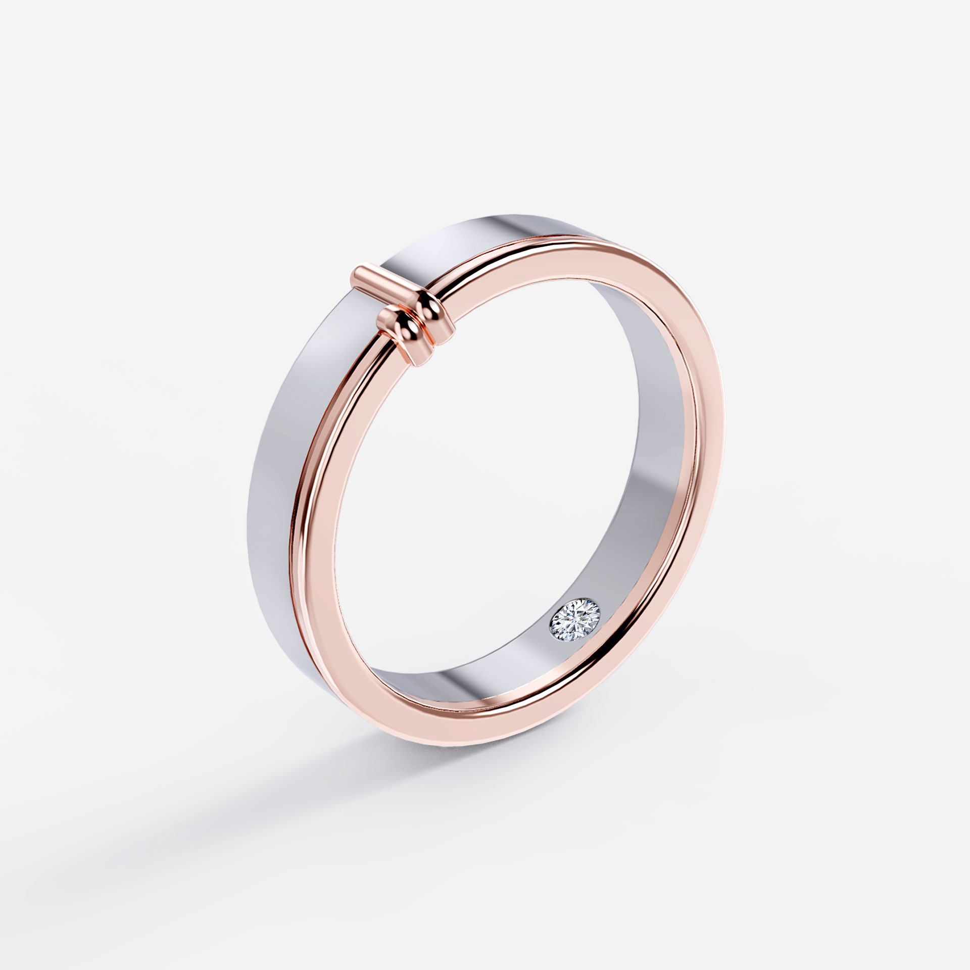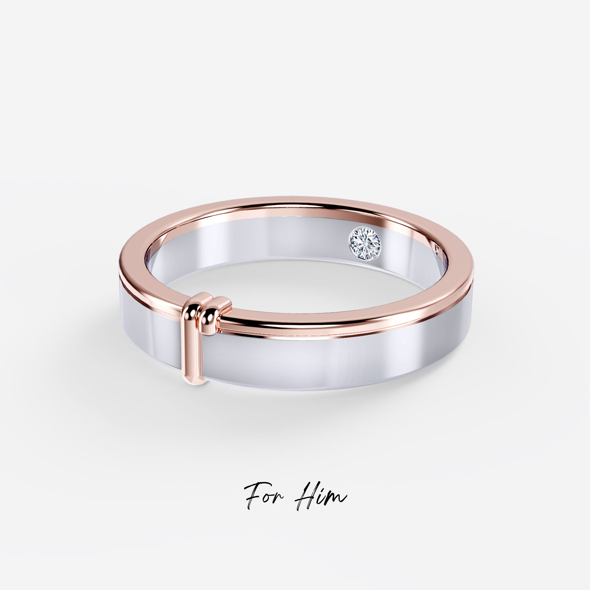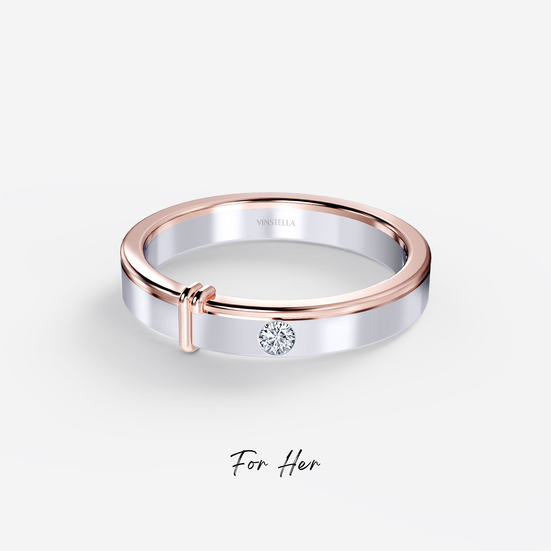 A beautiful symbolization of love, unity, and commitment, this matching wedding band draws inspiration from the “Tie The Knot” ceremony among Celtic wedding traditions. Highlighting two-tone design in a sterling silver band with rose-gold details around the ring edge and adorned by a dainty quartz diamond. This affectionate piece is gracefully set with a delicate strand, expressing two hearts coming together and the love bonds sealed for eternity.